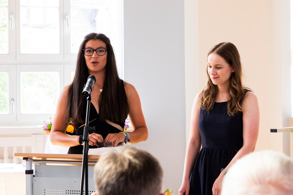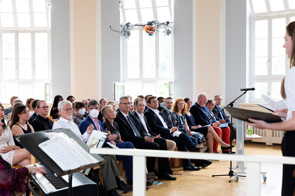 On June 17, the first graduates of human medicine and the master's program in immunology of the year 2022 were formally discharged during a ceremony of the Medical Faculty of Otto von Guericke University Magdeburg in the auditorium of the Hegel-Gymnasium. These 18 human medicine graduates and the 9 immunology graduates form the first part of their year, the larger second part will be discharged in December. After a 2-year break due to the Corona pandemic, the graduates were able to receive their graduation certificates in person.