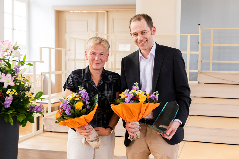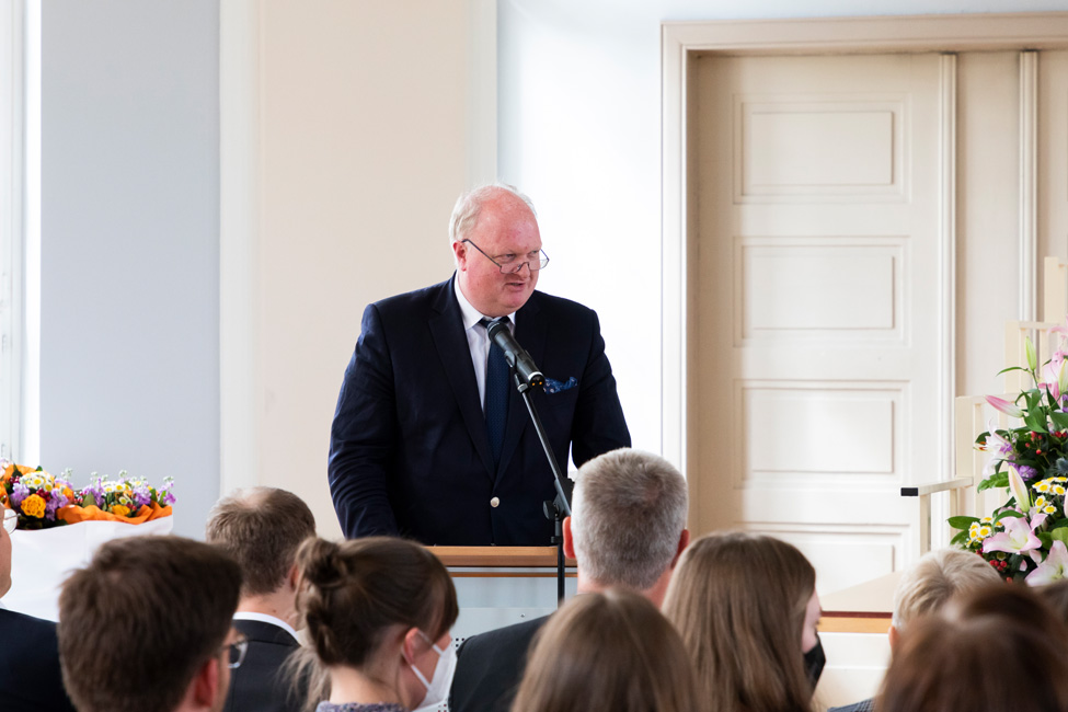 Dean of Studies Prof. Dr. med. Christoph Lohmann congratulated the graduates and emphasized in his welcome speech: "The last two and a half years were undoubtedly a special challenge for each of us. I am proud and at the same time grateful that you were so committed and willing to support us in all areas during this time and am therefore all the more pleased with you on your successful graduation. We wish you to continue on your path with success and to have fond memories of your time studying in Magdeburg." The welcome speech was followed by the ceremonial address, which this year was given by Prof. Dr. rer. nat. Gerburg Keilhoff. During this event, the biologist - as well as gastroenterologist Prof. Dr. med. Alexander Link - received the teaching award of the Medical Faculty. The teaching prize for special commitment to teaching was awarded to Sieglinde Staak, a member of staff at the Institute of Physiology.