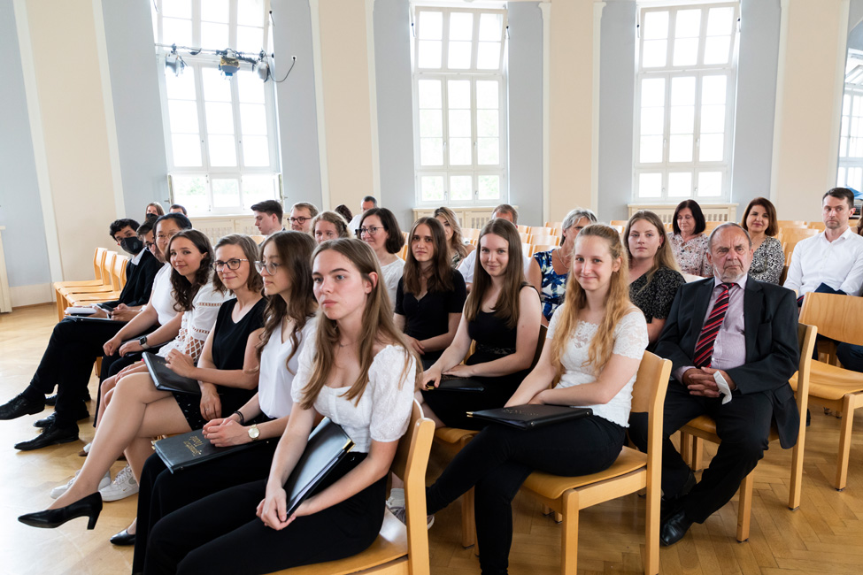 Photo: During a ceremony of the Medical Faculty of Otto von Guericke University Magdeburg, the first graduates of human medicine and the master's program in immunology of the year 2022 were formally aknowldedged in person.