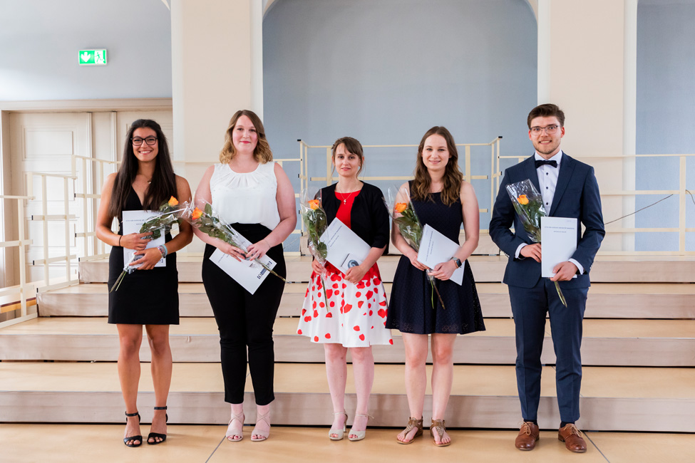 Of the human medicine graduates, 12 are female and 6 are male. Among the young doctors, 3 are from Saxony-Anhalt and 3 are international graduates. The best graduate was Marie Mersmann with a final grade of 1.0. In the master's program in immunology, Nouria Jantz-Naeem graduated as the best graduate. Of the 9 immunologists, 3 are male and 6 are female.