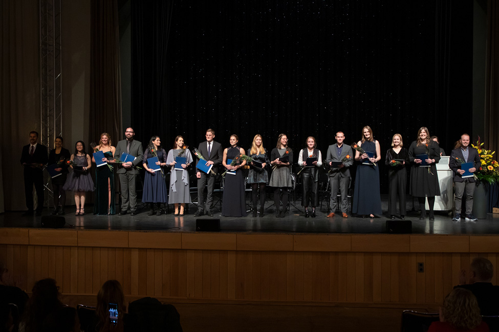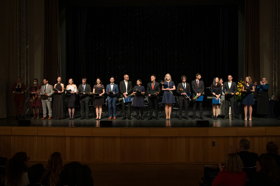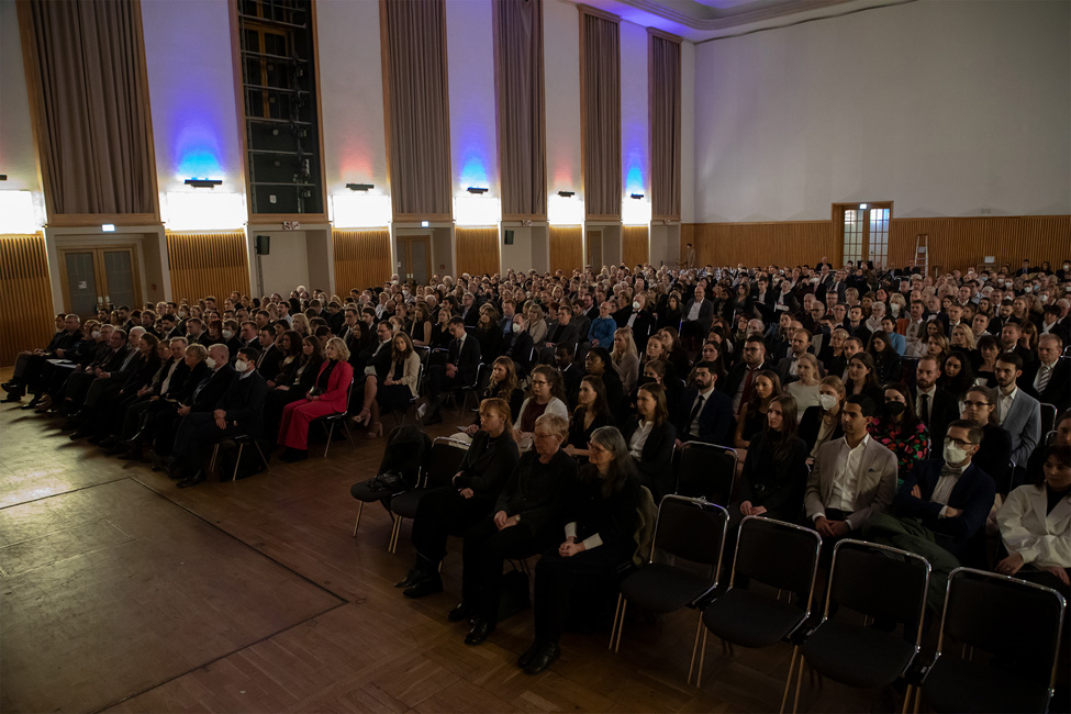 After a two-year break, students of human medicine at the Medical Faculty of Otto von Guericke University Magdeburg were again given their ceremonial farewells and released into professional life for the first time in the winter semester 2022/23. 152 doctors received their certificates on December 16, 2022, during a ceremony at the AMO Kulturhaus Magdeburg with more than 600 guests. Already in spring, 18 medical students had successfully completed their studies in human medicine. In addition, this year also 8 graduates in the master's program in immunology successfully completed their studies. This year's keynote speech was held by Prof. Dr. med. Thomas Hachenberg, Director of the University Clinic for Anesthesiology and Intensive Therapy Magdeburg. The event was musically accompanied by the academic orchestra of the University of Magdeburg conducted by Mauro Mariani.