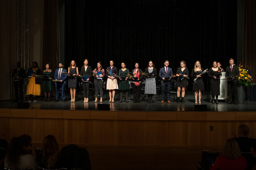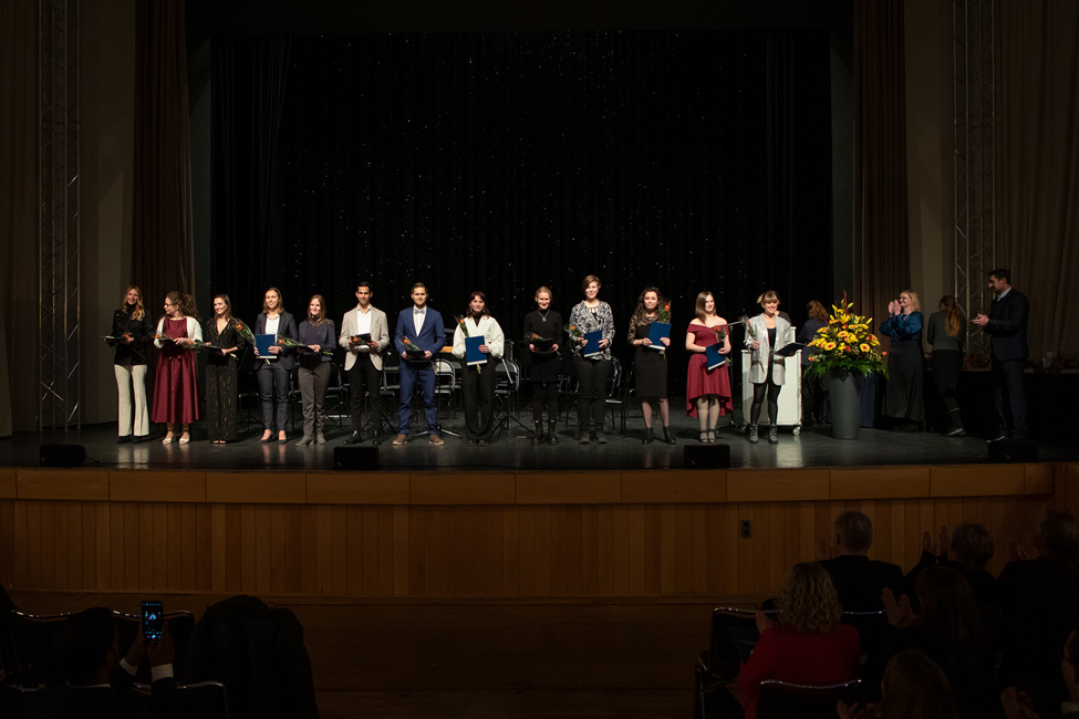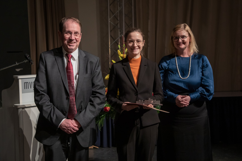 Traditionally, not only students are honored at the ceremony, but also outstanding teachers. This year, Prof. Dr. Herrmann-Josef Rothkötter for preclinical studies, Prof. Dr. Alexander Link for clinical studies and Evelyn Busse for her special commitment to teaching were honored as teaching award winners of the Medical Faculty.